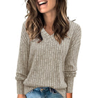 Bonnie - Tricou stilizat cu mânecă lungă și decolteu în V pentru femei