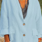 Clarice - Confortabilă jachetă din in cu nasturi pentru femei