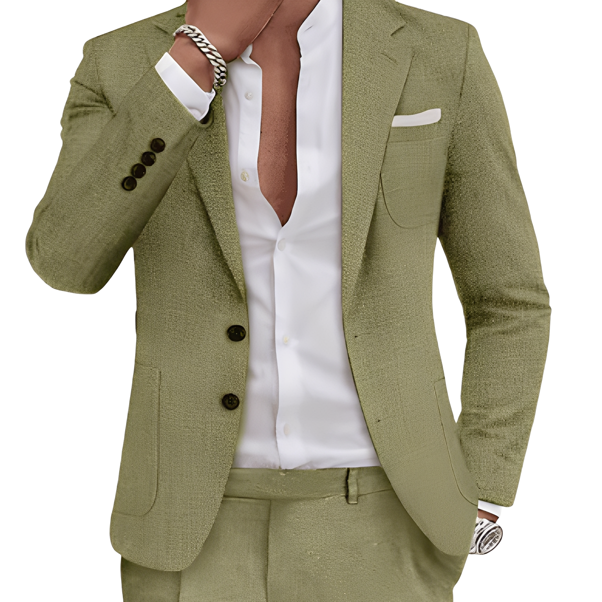Costumul Clinton combină stilul clasic cu lejeritatea modernă. Fabricat dintr-un amestec ușor de in, oferă o senzație plăcută la purtare – perfect pentru zilele calde sau ocazii speciale. Designul său elegant cu buzunare practice îl face un adevărat punct de atracție atât la birou, cât și în timpul liber.