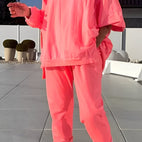 Setul Eleanore combină un tricou cu croi lejer cu o pereche de pantaloni asortați pentru un look relaxat, dar elegant. Fabricat dintr-un material moale și de calitate superioară, oferă confort pe tot parcursul zilei. Setul poate fi purtat atât separat, cât și împreună și este ideal pentru viața de zi cu zi, timpul liber sau ocazii relaxante. Perfect pentru femeile care doresc să combine stilul cu confortul.