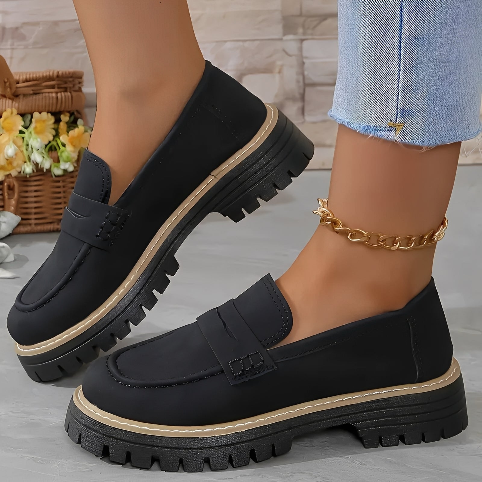 Acești loaferi eleganți cu platformă combină stilul atemporal cu o senzație plăcută de ușurință. Finisajul mat le conferă un aspect de înaltă calitate, care se potrivește atât ținutelor casual, cât și celor elegante. Talpa interioară moale asigură confort, în timp ce talpa ridicată vă oferă suport suplimentar și o siluetă modernă. Datorită designului slip-on simplu, sunt ideali pentru deplasări și perfecți pentru fiecare zi. Acești loaferi fac ca aspectul dumneavoastră să fie stilat fără efort.