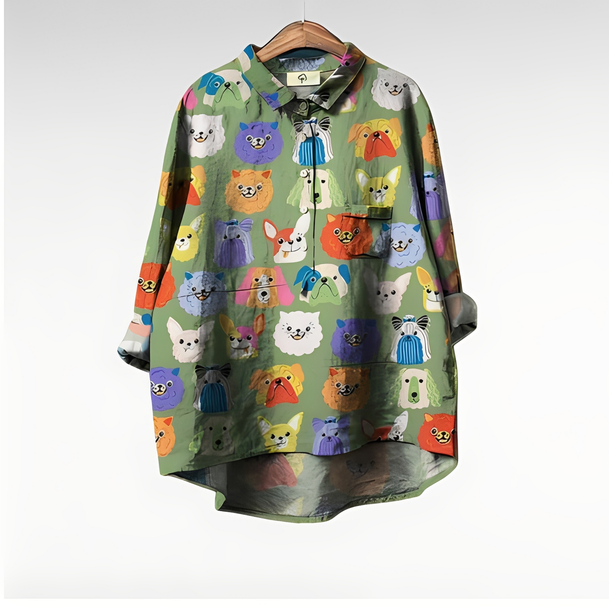 - Model imprimat cu câine unic: oferă o notă amuzantă și artistică ținutei tale, făcând-o deosebită.