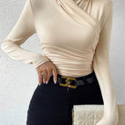 Der Isabelle – Pulover cu guler încrucișat și șnur pliabil combină stilul modern cu căldura confortabilă. Gulerul încrucișat adaugă un accent elegant, în timp ce plierile și șnurul subliniază silueta și pot fi ajustate individual. Materialul moale de tricot este plăcut pe piele și face puloverul să fie companionul ideal pentru zi și noapte. Fie că este purtat cu pantaloni cu talie înaltă, blugi sau fuste – Isabelle asigură fără efort o apariție elegantă. O piesă versatilă esențială pentru toți cei care iubesc lucrurile speciale.