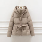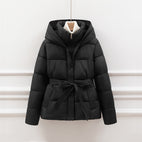 Jackalyn - Elegantă geacă matlasată cu glugă și curea pentru femei