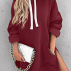 Acest hanorac în mărime mare combină stilul lejer cu un confort ridicat. Materialul moale și călduros asigură o senzație plăcută, în timp ce croiala relaxată oferă libertate maximă de mișcare. Gluga adaugă un aspect sportiv-modern designului și face hanoracul ideal pentru viața de zi cu zi, timp liber sau momente confortabile acasă. Fie că îl porți cu blugi, colanți sau pantaloni de jogging – această piesă versatilă se potrivește întotdeauna.