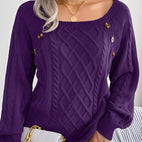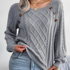 Sally - Pulover tricotat stilat cu design cu nasturi pentru femei