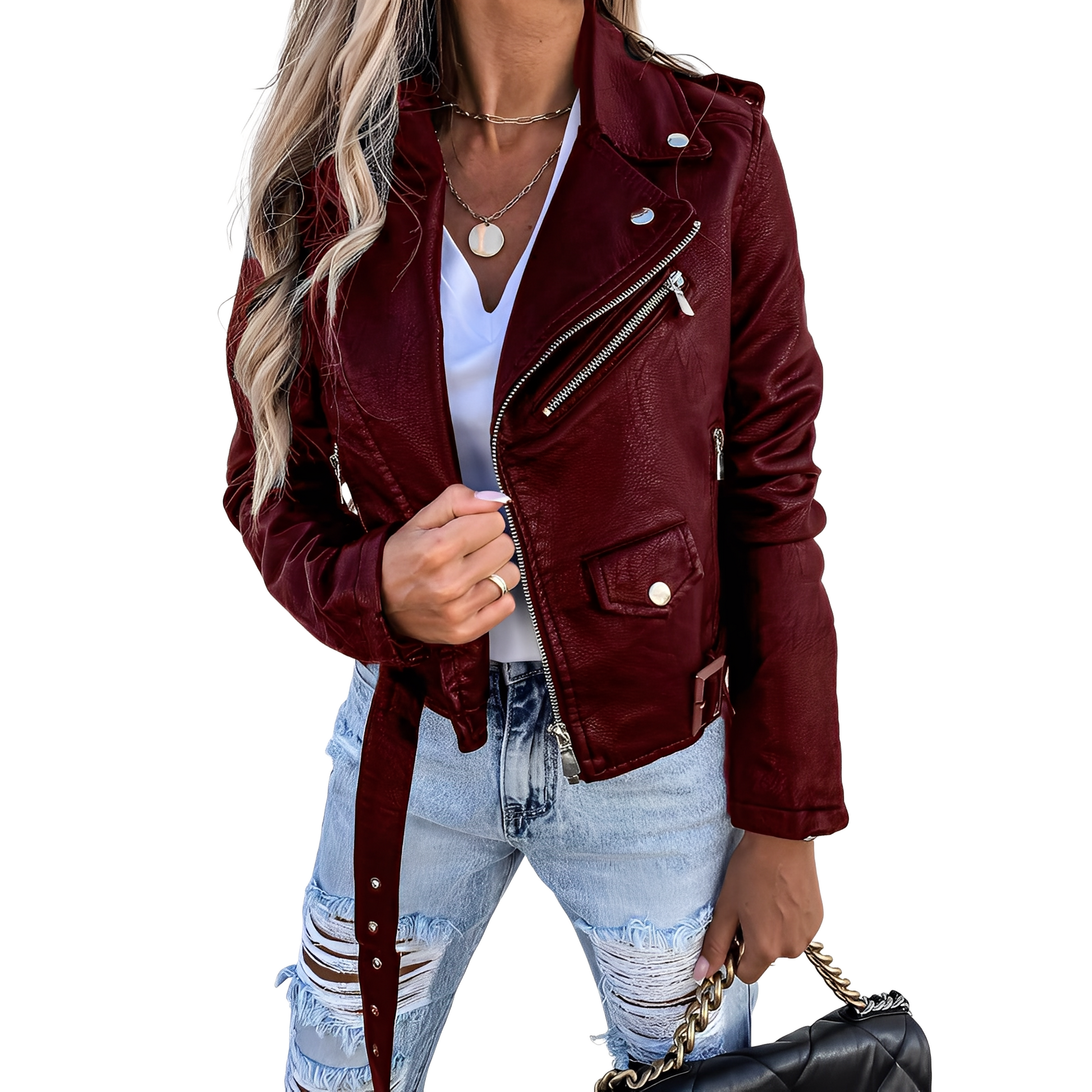 Tiana - Geacă retro de motociclist cu fermoar pentru femei